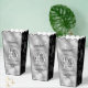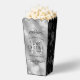 Celebrate their 10th tin wedding anniversary (and a movie-worthy love story) with these stylish popcorn style favour boxes! Elegant lettering with hexagonal confetti on simulated tin foil bordered by black panels add a memorable touch for this special occasion and milestone. Personalize with couple's names, dates of marriage, and messages.