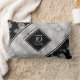 Celebrate the 10th wedding anniversary with this elegant commemorative lumbar throw pillow! Elegant black and white serif and sans serif lettering with hexagonal confetti on a tin foil background add a memorable touch for this special occasion and milestone. Customize with the couple's names and years of marriage for their tin anniversary.