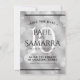 This flat card is the simple but beautiful way to remind family and friends to save the date for 10th tin wedding anniversary celebrations. Elegant lettering with hexagonal confetti on a tin foil background add a memorable touch for this special occasion and milestone. Customize as desired.