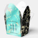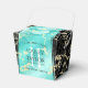 Celebrate their 11th turquoise wedding anniversary with these stylish favour boxes! Elegant lettering on a yellow marble and greenish blue background edged by black bars add a memorable touch for this special occasion and milestone. Reverse panel shows identical design. Customize with couple's names, dates of marriage, and messages.