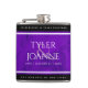 Celebrate the 12th wedding anniversary with this commemorative hip flask! Elegant white serif lettering on a luxurious purple silk background add a memorable touch for this special occasion and milestone. Customize with the happy couple's names, years of marriage, and congratulatory messages for their silk anniversary.