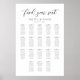 Classic Calligraphy Script Wedding Seating Plan. Find Your Seat sign. Personalized Seating Chart for 180 guests. Just click the customize further link, shown under the text personalization area on the right, and choose your custom colour background. This sign poster template makes it fast and easy to create stunning additions to your wedding decor. Signs can be enlarged, there are many sizes to choose from, as well as options for custom framing and matting.