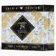 Celebrate the 18th wedding anniversary in style with this commemorative album! Elegant white serif and sans serif lettering with gold-dusted hexagonal confetti on a white and porcelain blue marbled background add a memorable touch for this special occasion and milestone. Customize with couple's names, and dates of marriage for their porcelain anniversary.