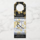 Celebrate the 18th wedding anniversary with these commemorative bottle hangers! Elegant black and white serif lettering with gold-dusted hexagonal confetti on a white and porcelain blue marbled background add a memorable touch for this special occasion and milestone. Customize with the happy couple's names, years of marriage, and personalized congratulatory messages for their porcelain anniversary.