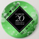 Celebrate the 20th emerald wedding anniversary with this stylish button! Elegant black and white lettering with hexagonal confetti on an emerald green background add a memorable touch for this special occasion and extraordinary milestone. Personalize with the couple's names and dates of marriage.