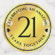 Add an extra special touch to 21st brass wedding anniversary celebrations with this elegant table confetti set! Elegant black and white serif lettering with hexagonal confetti on a brass foil or black background add a memorable touch for this special occasion and milestone. Customize with the happy couple's names, years of marriage, and congratulatory message(s).