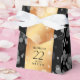 Celebrate the 22nd wedding anniversary in style with this commemorative favour box! Elegant black serif and sans serif lettering with hexagonal confetti on a copper background edged with black bars add a memorable touch for this special occasion and extraordinary milestone. Customize with the happy couple's names. Add even more customization with a date for the copper anniversary.