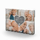 Customizable Elegant Celebrating 25th Anniversary 4 Photo Silver Heart Glitter White Frame Photo Block. A special and memorable photo collage gift for the 25th Anniversary. The design features a four-photo collage layout to display four of your own special photos. Colours can be changed to suit your preference.
