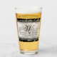 Make the 25th wedding anniversary an unforgettable celebration with this commemorative pint glass. Elegant black serif and script lettering with hexagonal confetti on a silver foil background edged by black bars add a memorable touch for this special occasion and extraordinary milestone. Customize with the happy couple's names, an initial for their surname, years of marriage, and/or personalized messages for their silver anniversary.