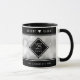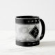 Celebrate the 25th silver wedding anniversary with this commemorative mug. Elegant white lettering with hexagonal confetti on a silver foil background add a memorable touch for this special occasion and extraordinary milestone. Personalize with the couple's names and years of marriage. Reverse shows identical design.