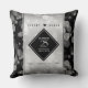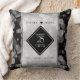 Celebrate the 25th wedding anniversary with this elegant commemorative throw pillow! Elegant black and white serif and sans serif lettering with hexagonal confetti on a silver foil background add a memorable touch for this special occasion and extraordinary milestone. Customize with the couple's names and years of marriage for their silver anniversary.