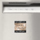 It was a bit smaller than expected, but I was too excited to check dimensions. The product itself send well printed though the grey text is a bit paint. Magnet worked perfectly on my fridge.