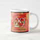 Celebrate the 29th garnet wedding anniversary with a couple of these stylish giant coffee mugs! Elegant lettering with gold-dusted hexagonal confetti on a reddish orange background add a memorable touch for this special occasion and extraordinary milestone. Personalize with the couple's names, dates of marriage and/or congratulatory messages. Reverse shows identical design.