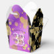 Celebrate their 33rd amethyst wedding anniversary with these stylish favour boxes! Elegant lettering with gold-dusted hexagonal confetti on an amethyst purple background edged by white and black bars add a memorable touch for this special occasion and extraordinary milestone. Reverse panel shows identical design. Customize with couple's names, dates of marriage, and messages.