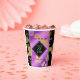 Celebrate the 33rd amethyst wedding anniversary with these stylish paper cups! Elegant black and white lettering with gold-dusted hexagonal confetti on an amethyst purple background add a memorable touch for this special occasion and extraordinary milestone. Personalize with the couple's names and years of marriage. Reverse shows identical design.