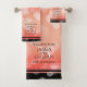 Célébrez le 35e anniversaire du mariage corallien avec ce set de serviettes élégant ! Des lettres élégantes avec des confettis hexagonaux sur un arrière - plan rose corail ajoutent une touche mémorable à cette occasion spéciale et à cette étape extraordinaire. Personnalisez avec les noms du couple, les dates du mariage et le message de félicitations. Design © W.H. Sim. Voir plus sur zazzle.com/expressionsoccasions