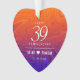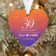 Celebrate the 39th agate wedding anniversary with this commemorative ornament! Elegant white serif and sans serif lettering on a swirling burnt orange to deep purple background add a memorable touch for this special occasion and extraordinary milestone. Customize with couple's names and wedding date. Reverse shows identical design. Use as is, or replace with a photo. This design is optimized for the circle, oval, heart, and shirt shapes.
