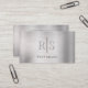 Elegant 3-D Monogram & Name QR code Brushed Silver Business Card