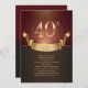 A retro invitation with a deep burgundy background is overlaid with a golden banner holding the word "anniversary" and just above it, a gold "40th" announces what the celebration is all about. A very stylish and elegant invitation for your special affair.