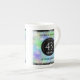 Celebrate the 43rd opal wedding anniversary with a couple of these commemorative bone china mugs! Elegant lettering with hexagonal confetti on an iridescent opal background add a memorable touch for this special occasion and extraordinary milestone. Customize with the couple's names, dates of marriage and congratulatory messages. Reverse shows identical design.
