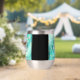 Make the 44th turquoise wedding anniversary an unforgettable celebration with this commemorative stainless steel stemless wine tumbler! Elegant lettering on yellow marble and greenish blue background add a memorable touch for this special occasion and extraordinary milestone. Customize with couple's names, dates of marriage, and congratulatory message. Reverse shows identical design.