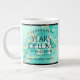 Celebrate the 44th turquoise wedding anniversary with a couple of these stylish giant coffee mugs! Elegant lettering on a yellow marble and greenish blue background add a memorable touch for this special occasion and extraordinary milestone. Personalize with the couple's names, dates of marriage and/or congratulatory messages. Reverse shows identical design.