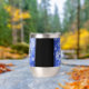 Make the 45th sapphire wedding anniversary an unforgettable celebration with this commemorative stainless steel stemless wine tumbler! Elegant lettering with hexagonal confetti on a sapphire blue background add a memorable touch for this special occasion and extraordinary milestone. Customize with couple's names, dates of marriage, and congratulatory message. Reverse shows identical design.