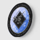 Celebrate the 45th sapphire wedding anniversary and a love that stands the test of time with this commemorative clock! Elegant black and white lettering with hexagonal confetti on a sapphire blue background add a memorable touch for this special occasion and extraordinary milestone. Customize with the couple's names, years of marriage, and congratulatory messages.