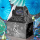 Celebrate the 4th wedding anniversary in style with this commemorative favour box! Elegant white serif lettering with hexagonal confetti on alternating grey linen and black backgrounds add a memorable touch for this special occasion and milestone. Customize with the happy couple's names, years of marriage, and personalized congratulatory messages for their linen anniversary.