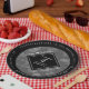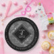 Celebrate the 4th linen wedding anniversary with these stylish paper plates! Elegant white lettering with hexagonal confetti on a grey linen background add a memorable touch for this special occasion and milestone. Personalize with couple's names, date(s) of marriage, and congratulatory messages on the rims.