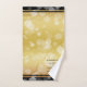 Célébrez le 50e anniversaire de mariage d'or avec cet ensemble de serviettes élégant! Le lettrage élégant avec des confettis hexagonaux sur un arrière - plan en feuille d'or bordé de barres noires sur le dessus et le dessous apporte une touche mémorable à cette occasion spéciale et à cette étape extraordinaire. Personnalisez avec les noms du couple, les dates du mariage et le message de félicitations. Design © W.H. Sim. Voir plus sur zazzle.com/expressionsoccasions