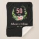 Elegant 50th anniversary black floral Sherpa Blanket. Personalize with age, names and dates.