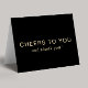 Elegant black 50th birthday party thank you card featuring "Cheers To You And Thank You" showcased in a blend of classic serif and simple gold typography. On the inside, you can add a personal message and your name in a handwritten-style font, or leave blank for a hand-written note.