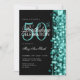 Elegant 50th Birthday Glam Sparkle Turquoise Invitation