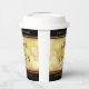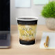 Celebrate the 50th golden wedding anniversary with these stylish paper cups! Elegant black and white serif lettering with hexagonal confetti on a gold foil background add a memorable touch for this special occasion and extraordinary milestone. Customize with couple's names, years of marriage, and congratulatory messages. Reverse shows identical design.