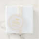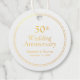 This elegant real gold foil, circle-shaped wedding anniversary thank you design has a delicate dotted border reminiscent of milgrain wedding rings. The front of this favour tag has the words 50th Wedding Anniversary, your names, and the date of your wedding anniversary -- in real gold foil. The back of this favour tag has your personal thank you message is a light blue script font. The light blue colour of the border and text can be customized to match your wedding anniversary theme colour. Easy to personalize.