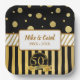 Elegant gold and black 50th wedding anniversary personalized paper plates, change the text to anything you want when you order.