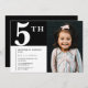 Elegant 5th birthday invitation Black Chic Modern calligraphy typography classic elegant girl