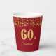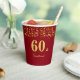 Elegant 60 and sensational Birthday with festive golden confetti on burgundy Paper Cups. Text can be personalized.