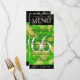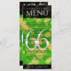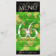 Add sophistication to 66th titanite wedding anniversary celebrations with this dinner menu, which features elegant lettering and gold-dusted hexagonal confetti on india green and black backgrounds. Customize with couple's names, dates of marriage, venue details, menu items, and congratulatory messages.