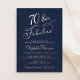 Elegant blue 70th birthday party invitation featuring "70 & Fabulous" and your name in chic calligraphy script fonts and your party details in simple lettering, all rendered in your choice of genuine gold, silver or rose gold foil.