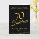 Elegant 70 and Fabulous Ornament 70th Birthday Card. 70 and fabulous text in trendy golden script and an elegant ornament on black background. Personalize it with your name and your age, and make personalized elegant birthday card. Add your birthday note inside the card or erase it.