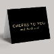 Elegant black 70th birthday party thank you card featuring "Cheers To You And Thank You" showcased in a blend of classic serif and simple gold typography. On the inside, add a personal message and your name, or leave blank for a hand-written note.