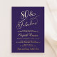 Elegant purple 80th birthday party invitation featuring "80 & Fabulous" and her name in chic calligraphy script fonts and the party details in simple lettering, all rendered in your choice of genuine gold, silver or rose gold foil.