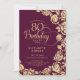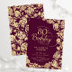 Elegant 80th Birthday Burgundy Gold Roses Invitation