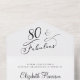 Elegant and chic eightieth birthday party all in one invitation with "80 & Fabulous" in a stylish calligraphy script on the top inner flap. Personalize the party invitation and details in simple modern typography and pretty script. A tear away RSVP postcard provides a convenient and envelope-free response from your guests.