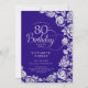 Elegant 80th Birthday Purple Silver Roses Invitation