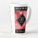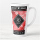 Celebrate the 80th ruby wedding anniversary with this stylish latte mug! Elegant white lettering with hexagonal confetti on a ruby red background edged by black bars add a memorable touch for this special occasion and extraordinary milestone. Personalize with the couple's names and years of marriage.