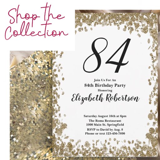 This pretty and elegant 84th birthday invitation for her is perfect for a nice party and will set a celebratory tone. The text is larger so you won't need to squint to see it!