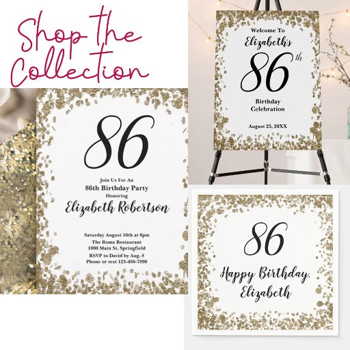 86th Birthday Gold Glitter Glam CelebrationConçu par Kara Buntin